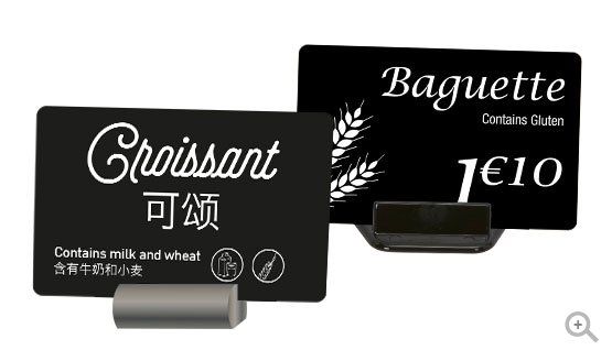 - Une communication claire et lisible avec un rendu ardoisine des étiquettes noires imprimées en blanc.