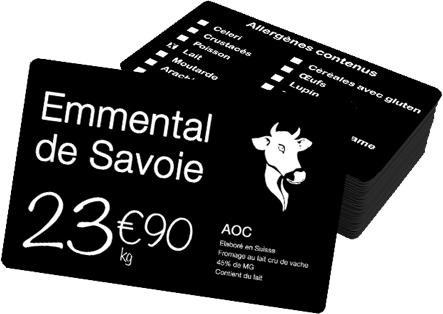 - Apparence professionnelle de vos étals : créez une harmonie entre vos différents rayons et suscitez l’intérêt de vos clients avec des étiquettes attractives.
