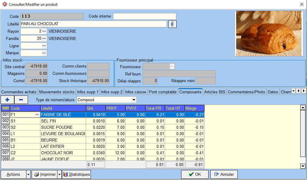 - Gestion des offres spéciales (ex . 3 baguettes achetées, 1 baguette gratuite)